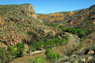 The 160-mile-long San Francisco River originates in Arizona’s White Mountains and flows east into New Mexico, flowing through the remote San Francisco Box Canyon. It continues south along the Arizona and New Mexico border until it makes a 90-degree turn back into Arizona, just south of the San Francisco Hot Springs. It is then joined by the Blue River and flows past the copper mining town of Clifton. The San Francisco continues southwest and joins the Gila River in the Gila Box Riparian National Conservation Area, a 23,000-acre preserve that protects unique habitat and wildlife.